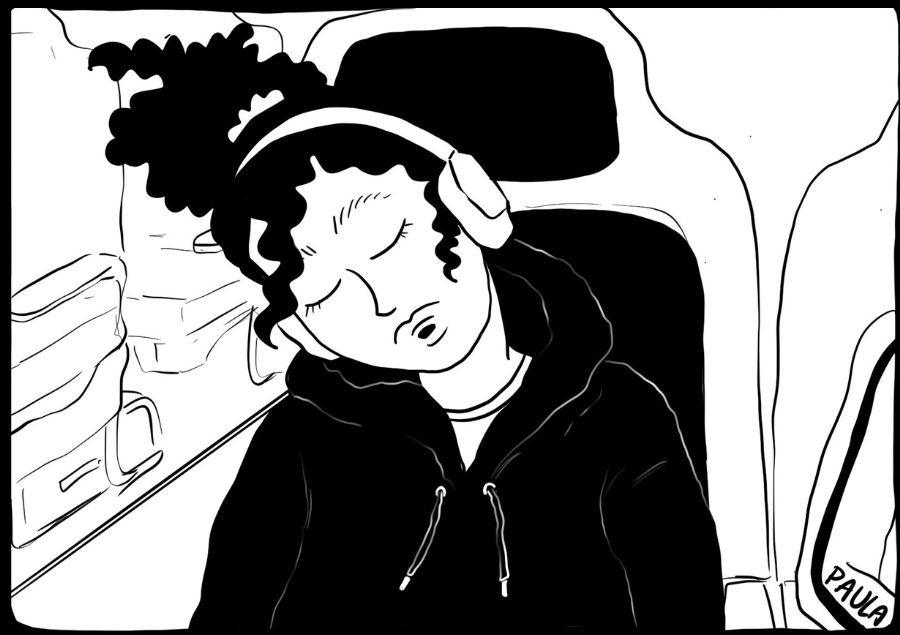 En el avión me aseguro de tener todo listo: varias listas de música y podcasts descargados en el teléfono, episodios y películas de Netflix en el iPad, el libro que esté leyendo en ese momento y un cuaderno por si me apetece dibujar o escribir. Siempre me tomo una o dos biodraminas antes de despegar para no marearme. El sushi me gusta comerlo cuando pasa el carrito de comida en el avión. Me encanta saber que tengo horas y horas de entretenimiento en forma de música, radio, televisión y lectura para mi vuelo de dos horas y media.
