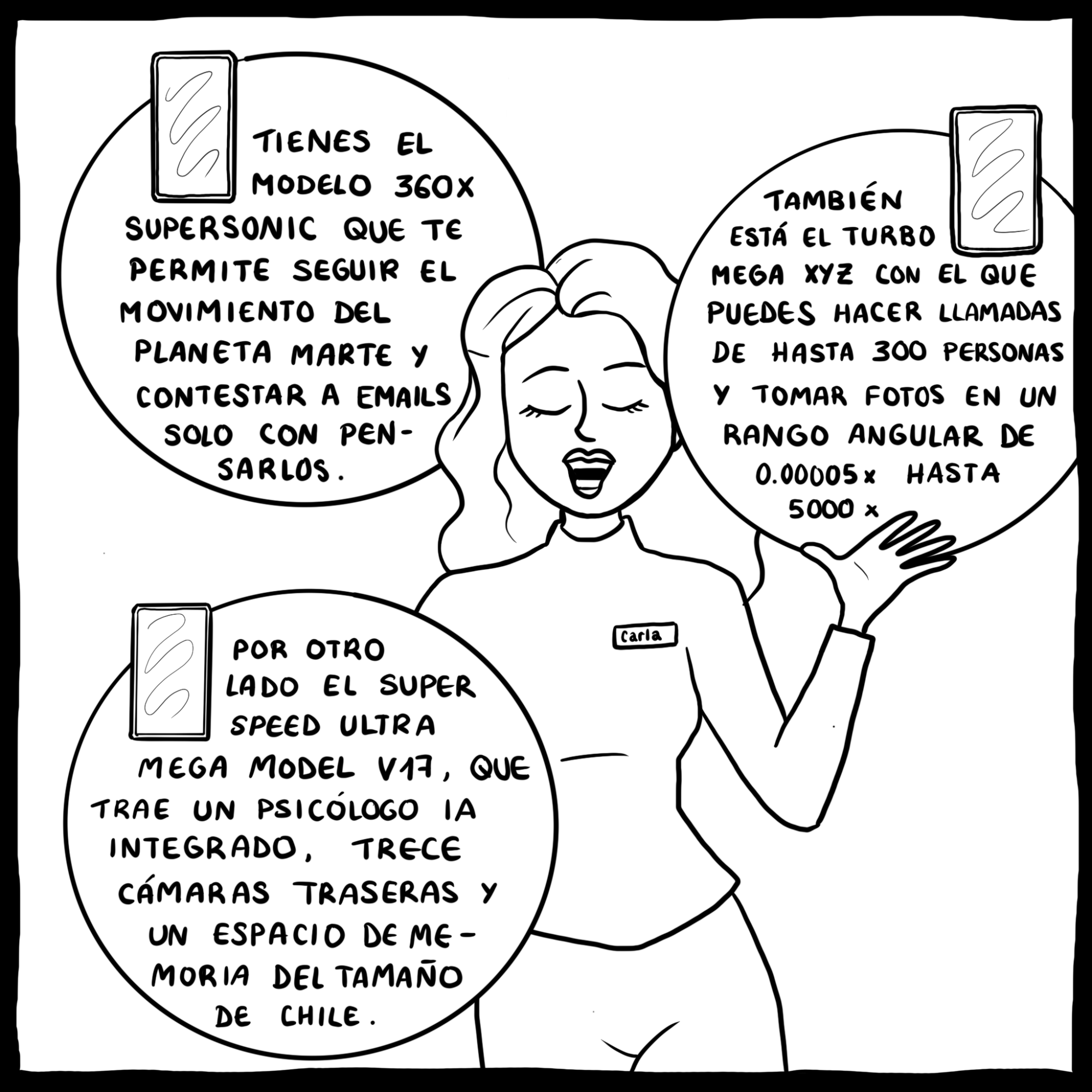 Hay cosas que dan rabia. Una de ellas es despertarte un día tranquilamente y que tu teléfono haya dejado de funcionar. Me dirijo a la tienda de dispositivos electrónicos a ver qué me ofrecen.
