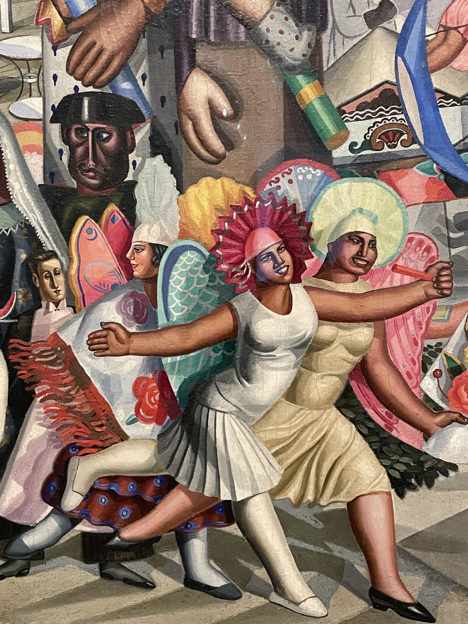 La muestra, que ya pudo verse el pasado verano en el Centro Botín de Santander, incluye pinturas, documentos y vídeos, escritos y dibujos que recorren toda la vida y carrera de Mallo: desde el realismo mágico y sus trabajos surrealistas hasta las figuras geométricas, fantásticas y cósmicas de su última época. Desde sus obras en el Madrid de entreguerras, con escenas populares, dinámicas y coloristas hasta sus series sobre el trabajo – la Religión del Trabajo, lo llamó ella- monocromáticas y clásicas. De sus naturalezas vivas y sensuales a sus figuras y cabezas femeninas, altivas y fuertes. Porque la mujer es una gran protagonista en su obra. Mujeres modernas, femeninas, activas y alegres como las que pueden verse en la serie de las Verbenas, tal vez su obra más conocida por la vivacidad, colorido y mezcla de arte popular y vanguardia.